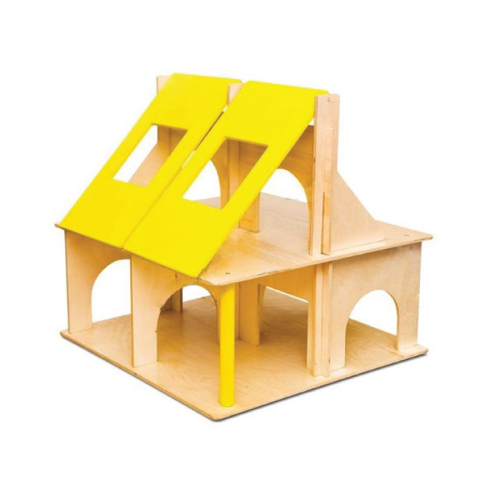 Velika, stabilna kućica za lutke na dva kata, karakterizirana otvorenom strukturom i platformom koja omogućuje istovremenu igru više djece. Pokretni krov, s krilima koja se mogu podešavati s obje strane, pruža dodatnu atrakciju. Kućica se isporučuje bez dodataka, što vam omogućuje da uredite unutrašnjost prema vlastitim idejama.