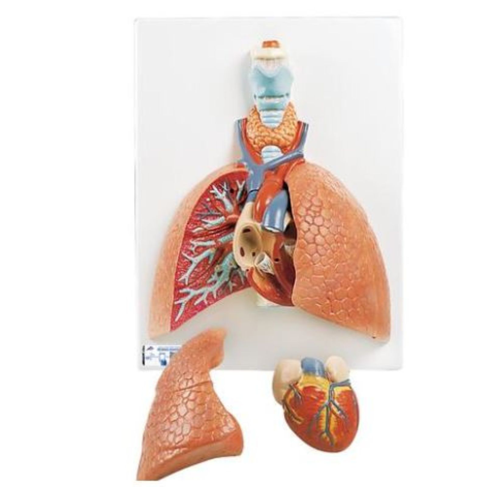 Ovo je izvrstan model anatomije plućnog područja. Model pluća s grkljanom nalazi se na postolju radi lakšeg prikaza u učionici ili liječničkoj ordinaciji.