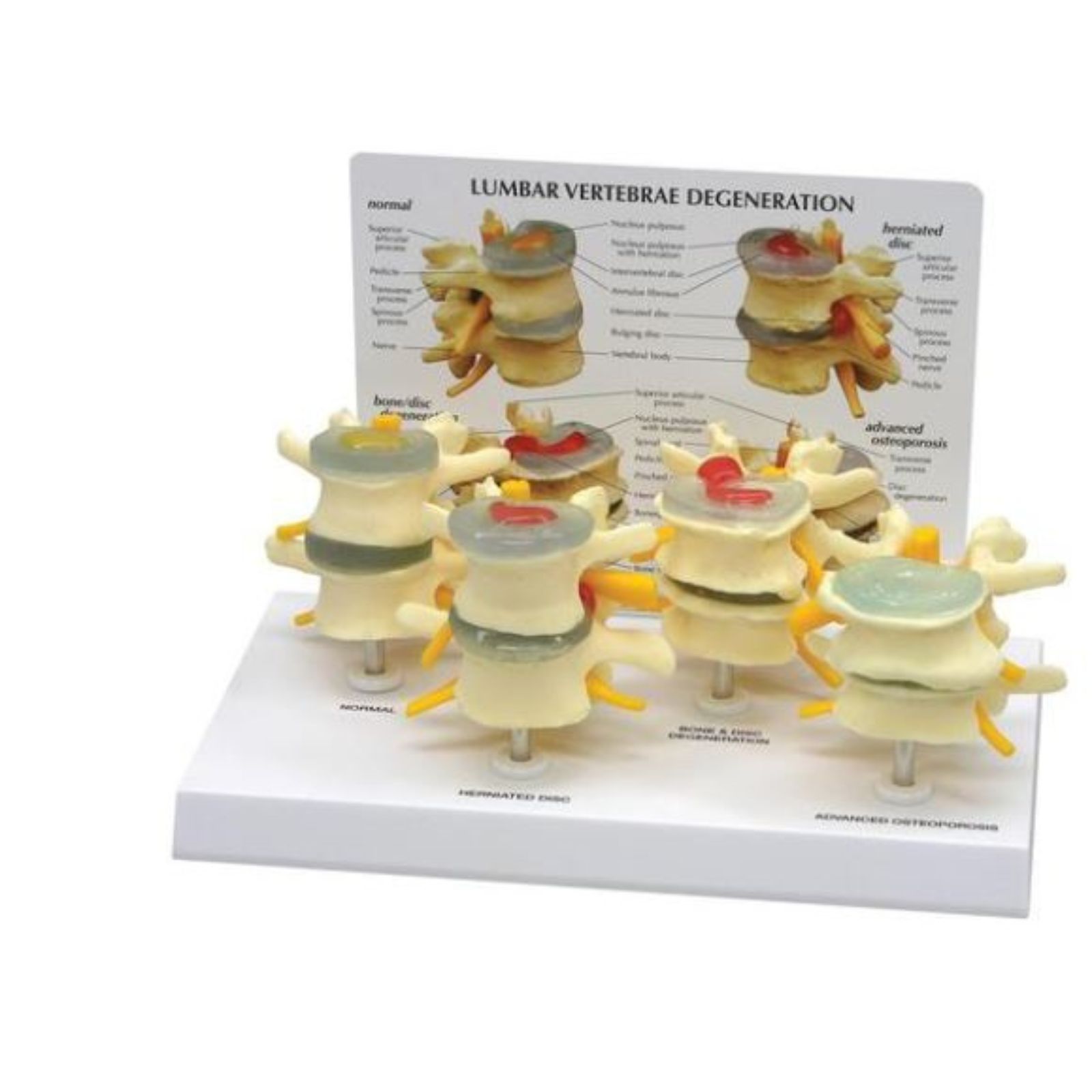 Set od četiri modela kralježaka u punoj veličini iz dva dijela – po jedan za svako od sljedećih stanja: normalna, “izbočena” hernija diska, degeneracija kostiju i diska te uznapredovala osteoporoza s izraženom kompresijom kostiju i koštanim izraslinama.